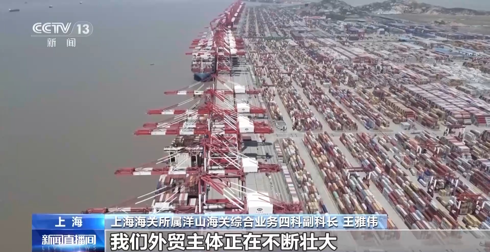 上海海關所屬洋山海關綜合業(yè)務四科副科長 王雅偉:今年1月份以來,我們共受理海關進出口報關單3.3萬份,較去年同期增長了近兩個百分點。這些數據讓我們明顯感覺到,外貿主體正在不斷壯大,外貿市場活力也在持續(xù)增強。