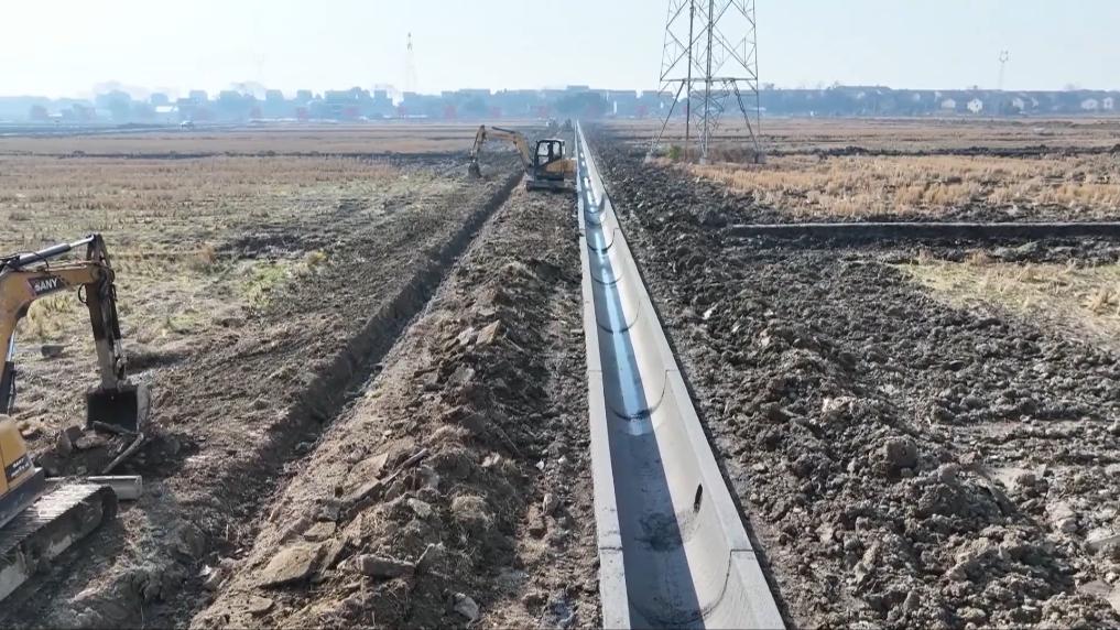 在資陽區(qū)沙頭鎮(zhèn)富興村高標準農(nóng)田建設(shè)現(xiàn)場,工人們正緊張有序地開挖渠道、安裝渠槽。