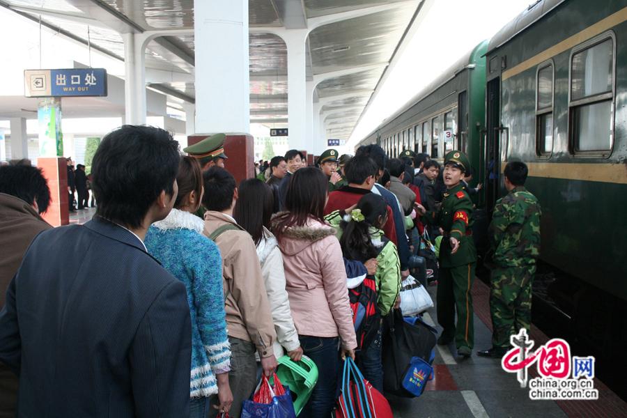 2007春運,旅客在吉安站排隊登乘“綠皮車”。中國網(wǎng)發(fā) 南鐵供圖