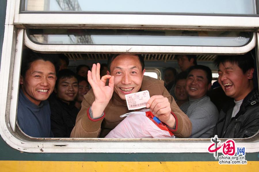 2010年春運,旅客展示自己的火車票。中國網(wǎng)發(fā) 南鐵供圖