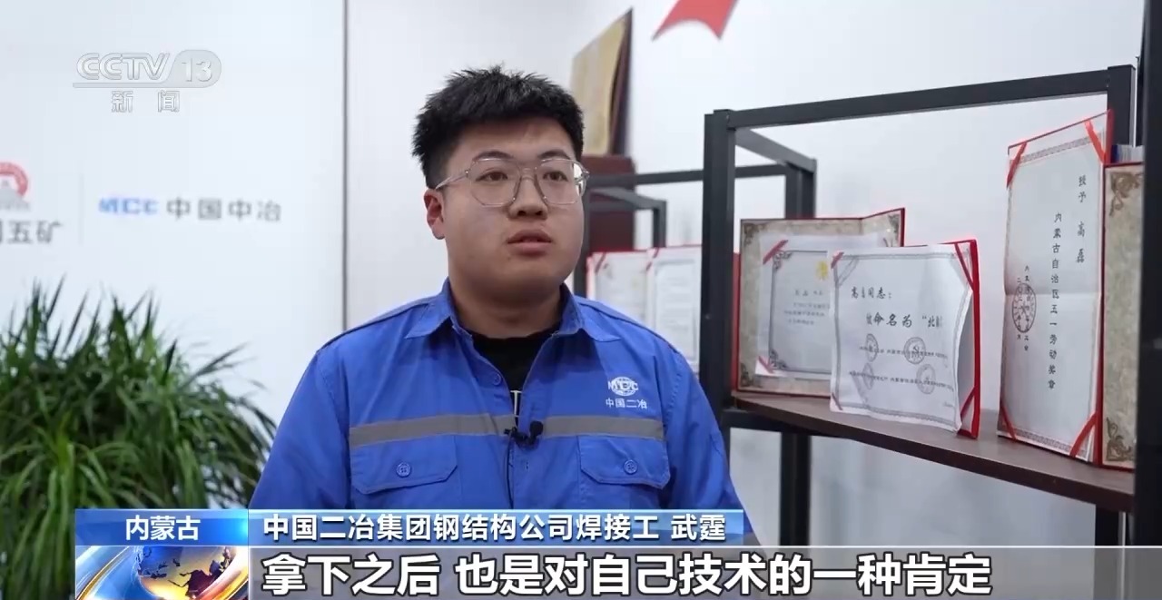 中國二冶集團鋼結(jié)構(gòu)公司焊接工 武霆:心里還是很有成就感的。拿下之后也是對自己技術(shù)的一種肯定,自己提升技術(shù)也是比較好的一個渠道。