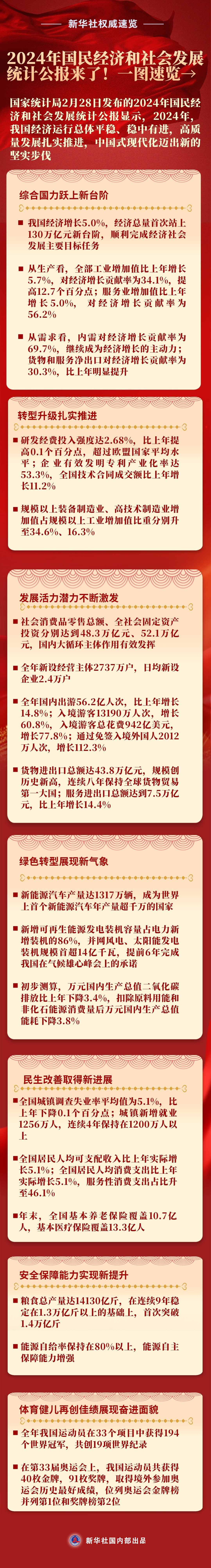 新華社權(quán)威速覽丨2024年國民經(jīng)濟(jì)和社會發(fā)展統(tǒng)計(jì)公報(bào)來了!一圖速覽→