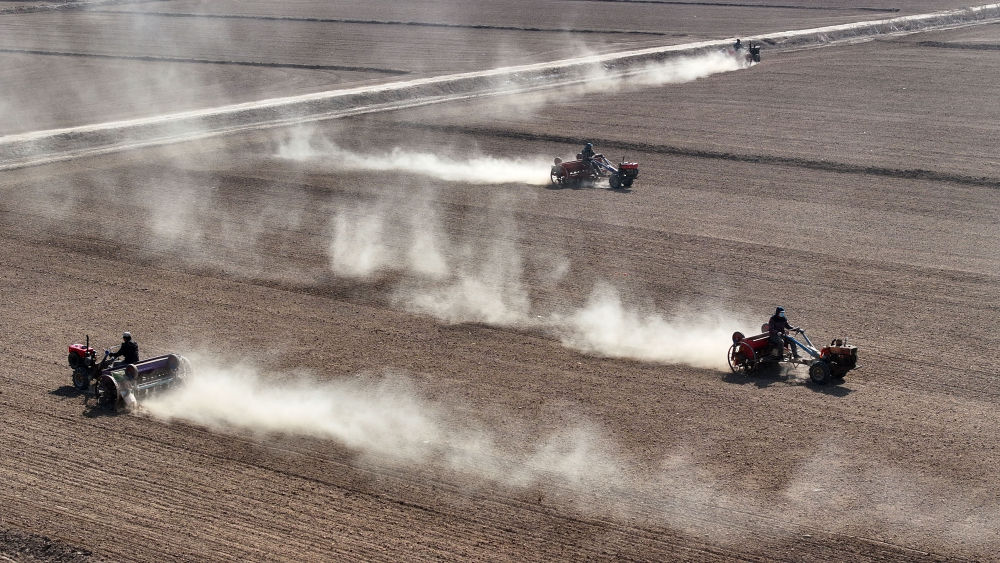 近日,隨著天氣逐漸轉(zhuǎn)暖,寧夏銀川市賀蘭縣各鄉(xiāng)鎮(zhèn)積極推進春耕生產(chǎn)工作。 新華社記者 王鵬 攝