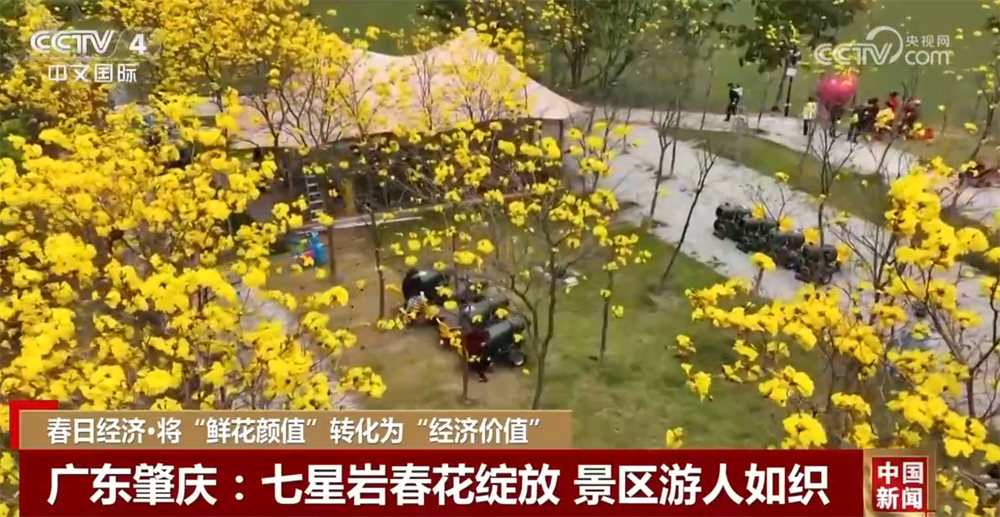 在廣東肇慶七星巖景區(qū),宮粉紫荊、黃花風(fēng)鈴木、櫻花、禾雀花等競(jìng)相綻放。在禾仙島上的黃花風(fēng)鈴木林正值盛放期,金燦燦的花冠與星湖碧波相映成趣。景區(qū)推出門票優(yōu)惠等舉措,吸引游客來(lái)賞花。