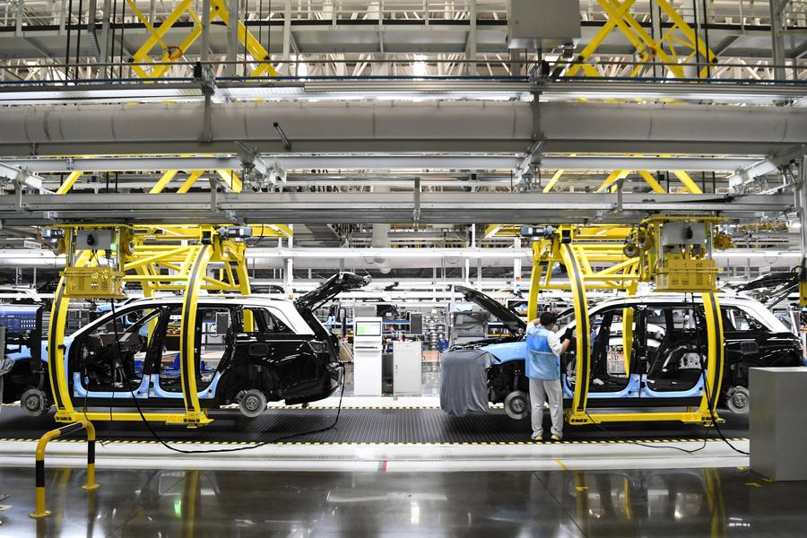這是在位于重慶市兩江新區(qū)的賽力斯汽車超級工廠智能化生產(chǎn)作業(yè)現(xiàn)場(2024年6月7日攝)。新華社記者 王全超 攝