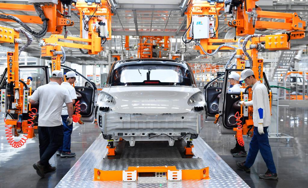 在廣西柳州市上汽通用五菱精益智造工廠,工人在生產(chǎn)線上工作(2024年5月9日攝)。新華社記者 金皓原 攝