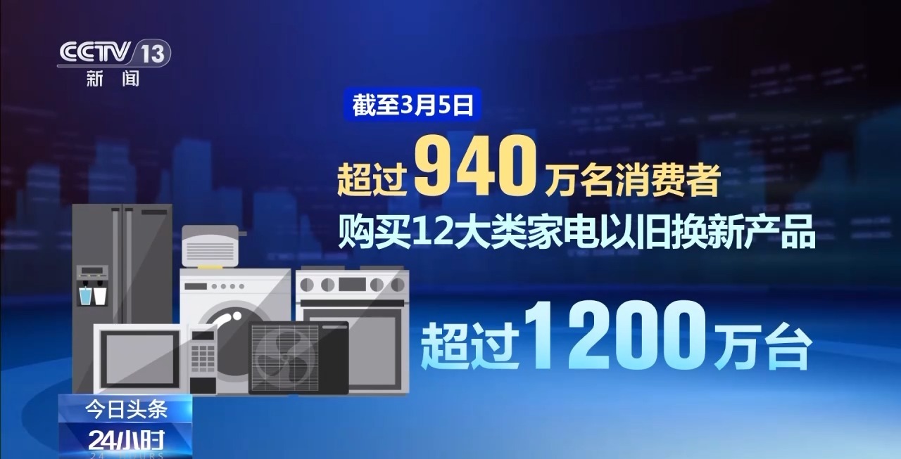商務(wù)部數(shù)據(jù)顯示,截至3月5日,超過940萬名消費者購買12大類家電以舊換新產(chǎn)品超過1200萬臺,已有超過3400萬名消費者申請了超過4200萬件手機(jī)等數(shù)碼產(chǎn)品購新補貼。