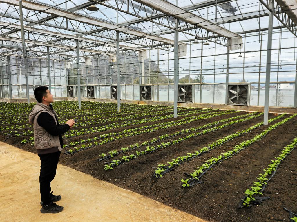 在廣西賀州市平桂區(qū)國家現(xiàn)代農(nóng)業(yè)產(chǎn)業(yè)園品種篩選適應(yīng)棚內(nèi),技術(shù)人員陳愈璋輕觸手機(jī),蔬菜大棚的內(nèi)遮陽網(wǎng)緩緩開啟。“早春時(shí)節(jié)氣溫波動(dòng)較大,有了物聯(lián)網(wǎng)技術(shù),可以隨時(shí)調(diào)整遮陽網(wǎng)開合,效率提高了很多?!标愑罢f。