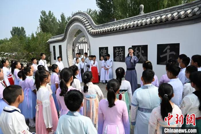 來自省內(nèi)外的學(xué)生在王維水墨小鎮(zhèn)參加研學(xué)活動(dòng)。(資料圖片) 吳遵民 攝