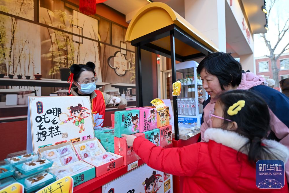 游客在天津哪吒小鎮(zhèn)購買糕點產(chǎn)品(3月16日攝)。