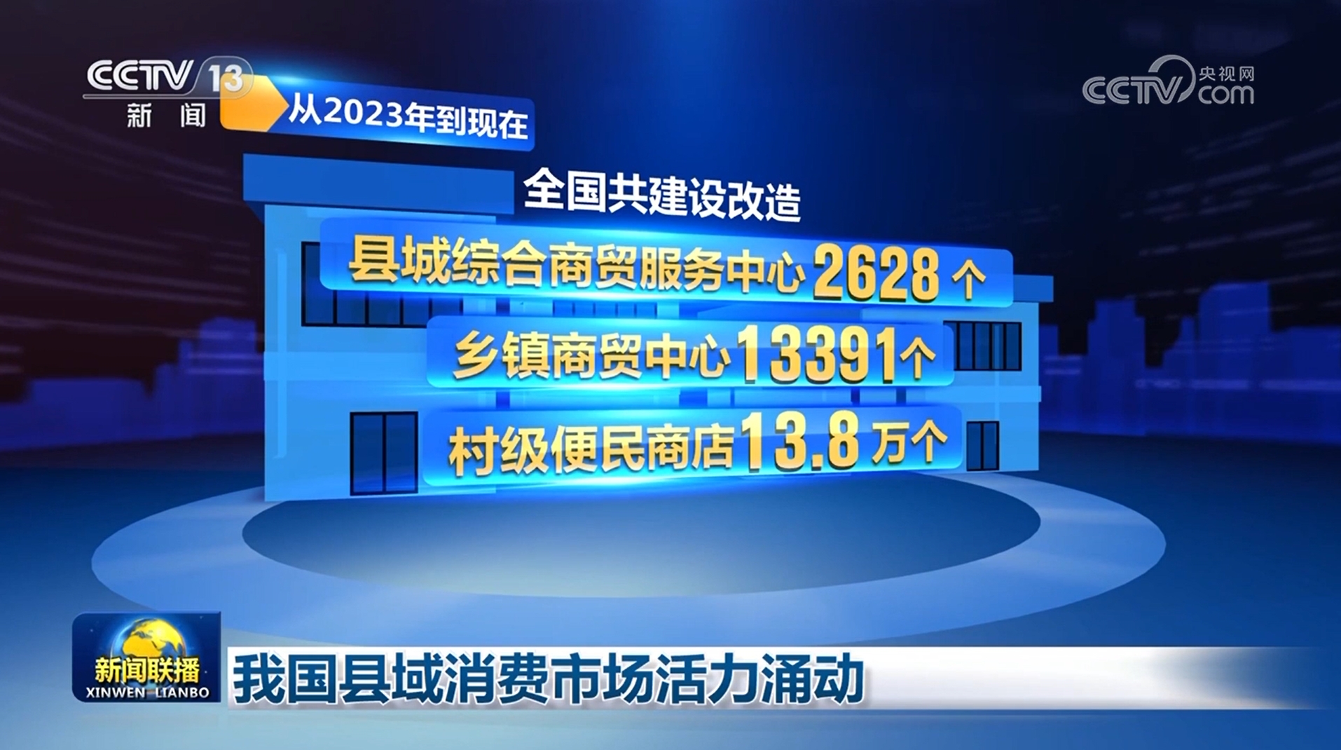商務(wù)部數(shù)據(jù)顯示,從2023年到現(xiàn)在,全國(guó)共建設(shè)改造縣城綜合商貿(mào)服務(wù)中心2628個(gè)、鄉(xiāng)鎮(zhèn)商貿(mào)中心13391個(gè)、村級(jí)便民商店13.8萬(wàn)個(gè)。