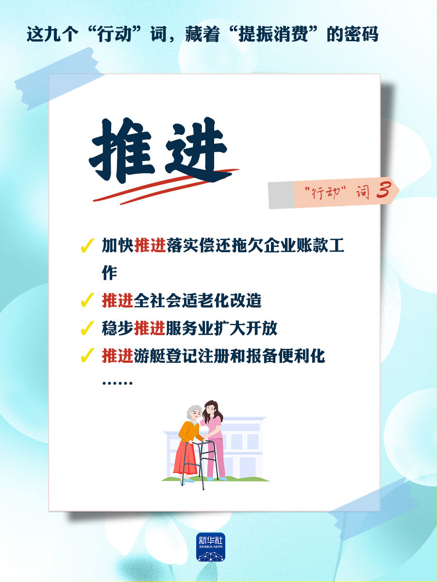 我們梳理出“方案”中使用頻率較高的九個(gè)“行動(dòng)”詞,從這些不同維度的“行動(dòng)”詞中,解讀“專項(xiàng)行動(dòng)”的豐富內(nèi)涵和政策“含金量”,看看哪些是立竿見影、吹糠見米的惠民行動(dòng)?哪些是需要加力擴(kuò)圍、加快補(bǔ)齊的消費(fèi)短板?還有哪些是需要有序推進(jìn)、以點(diǎn)帶面的消費(fèi)“新”點(diǎn)?
