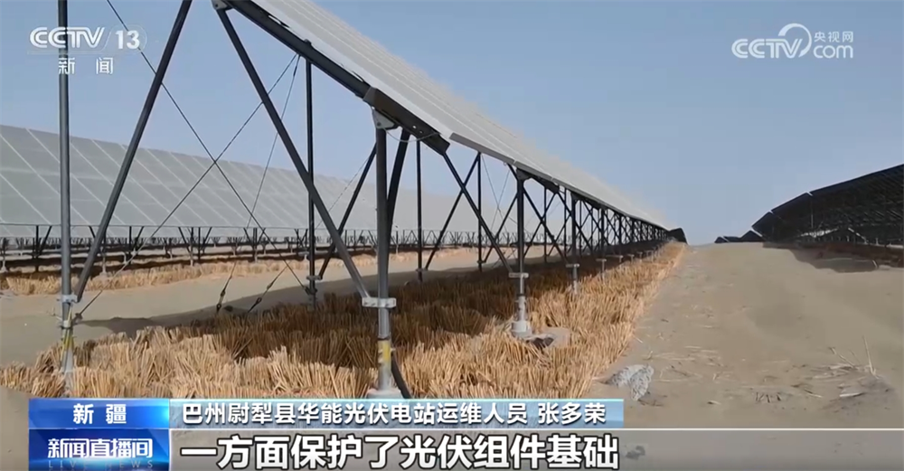 巴州尉犁縣華能光伏電站運(yùn)維人員張多榮稱:“大概兩個(gè)月時(shí)間就能抽穗發(fā)芽了,一方面保護(hù)了光伏組件基礎(chǔ)不被黃沙掩埋或掏空,另一方面改善了周圍環(huán)境。”