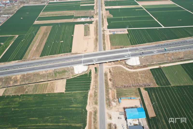 從空中俯瞰,蘭原高速(橫向)與魯陳路(縱向)成十字形(央廣網(wǎng)發(fā) 趙夢(mèng)陽(yáng) 攝)