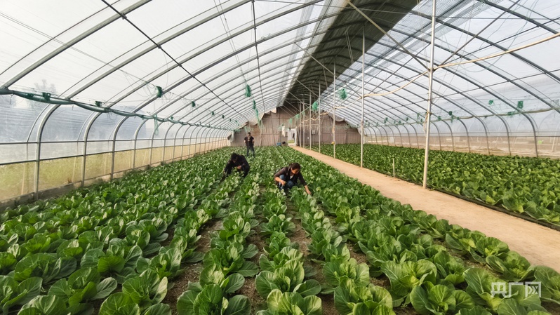 李王莊村蔬菜大棚里的甘藍(lán)長(zhǎng)勢(shì)喜人(央廣網(wǎng)記者 郝振青 攝)