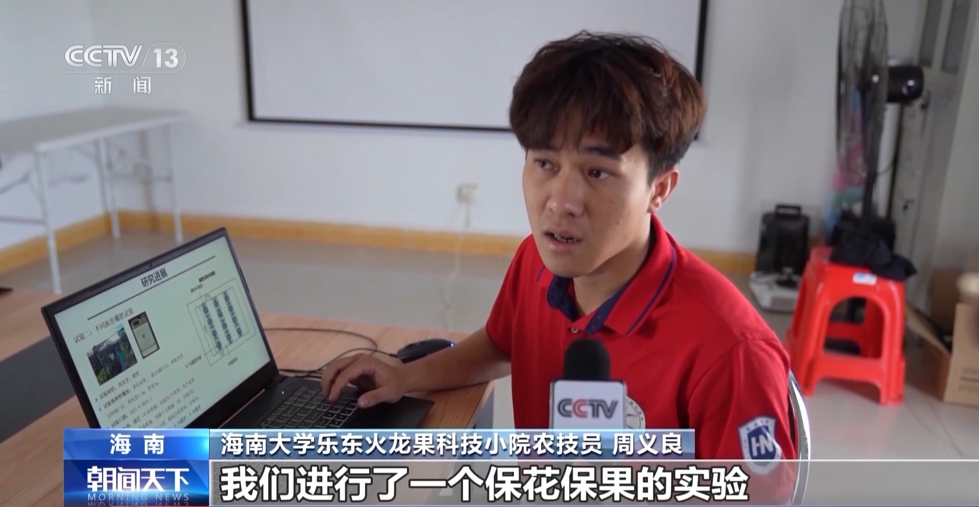海南大學(xué)樂(lè)東火龍果科技小院農(nóng)技員 周義良:根據(jù)這個(gè)現(xiàn)狀,我們進(jìn)行了一個(gè)保花保果的實(shí)驗(yàn),通過(guò)不同濃度的硼肥、氨基酸肥、授粉和溫度調(diào)控來(lái)進(jìn)行實(shí)驗(yàn),坐果率提升了20%左右。
