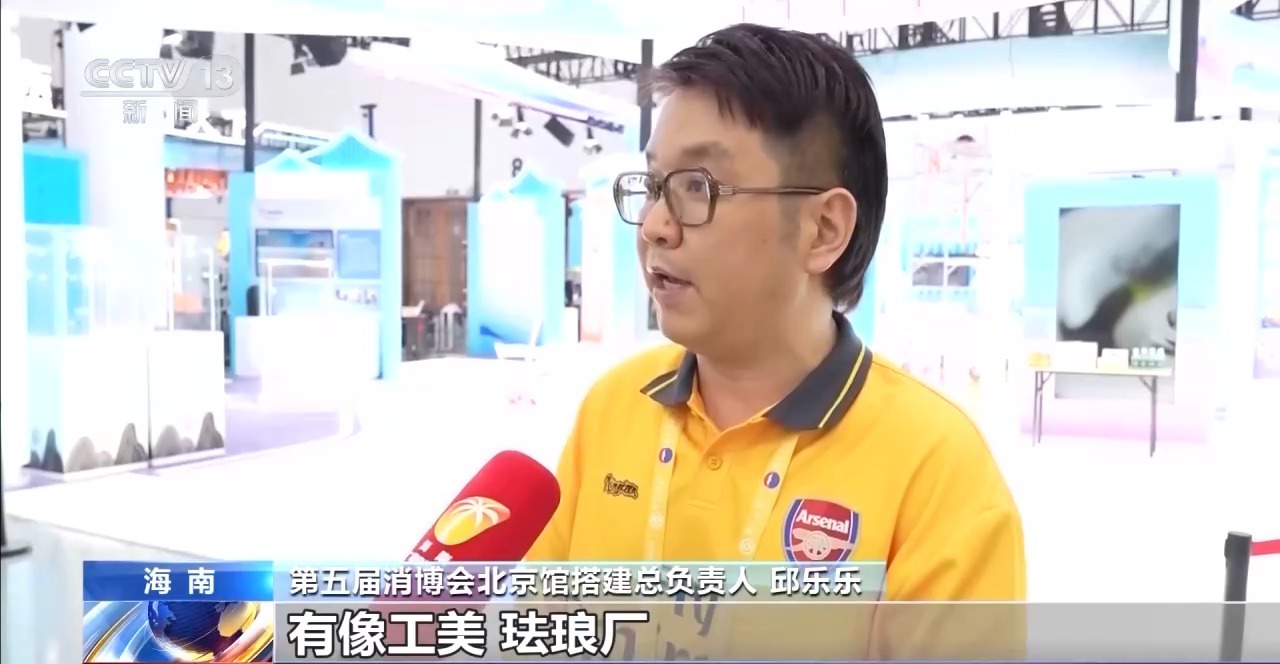 第五屆消博會北京館搭建總負責人 邱樂樂:這次北京也帶來25家企業(yè),有像工美、琺瑯廠、菜市口百貨這些老企業(yè),也有新媒體的企業(yè)。