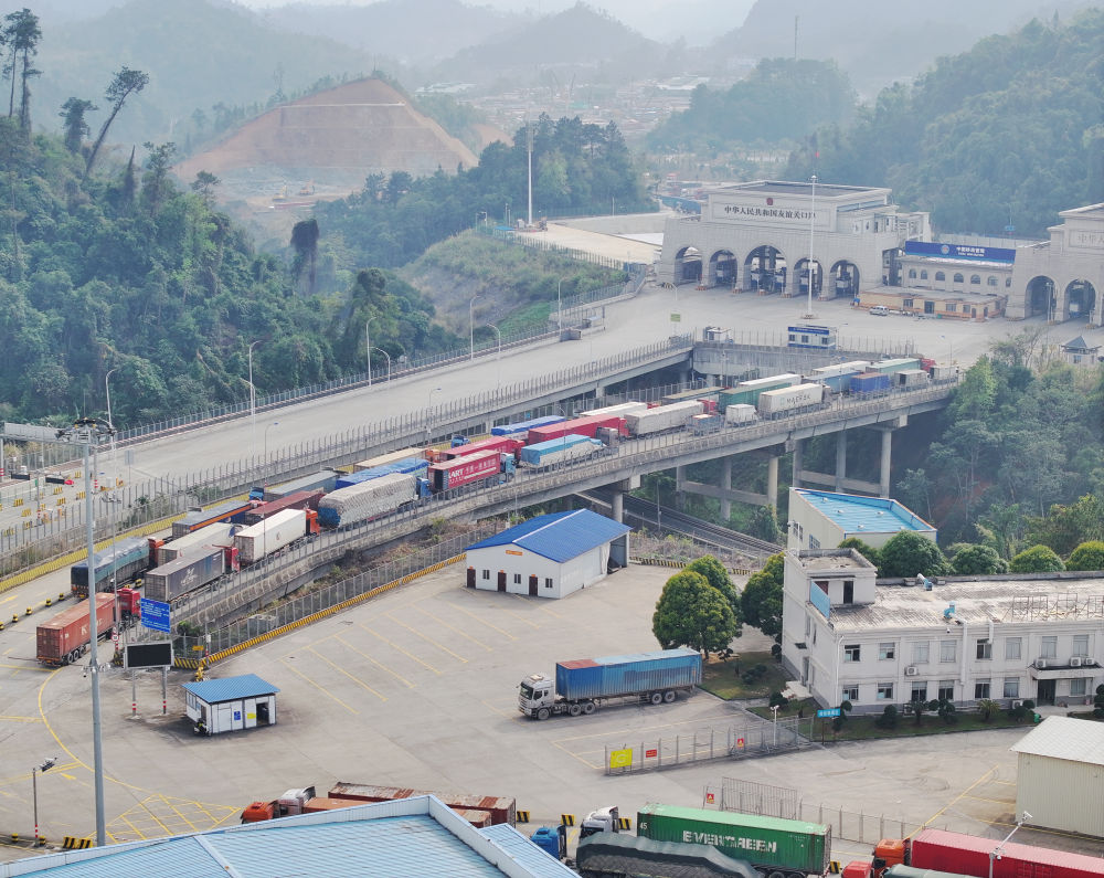 這是2025年3月1日拍攝的廣西憑祥友誼關(guān)口岸(無人機(jī)照片)。 新華社記者周華攝