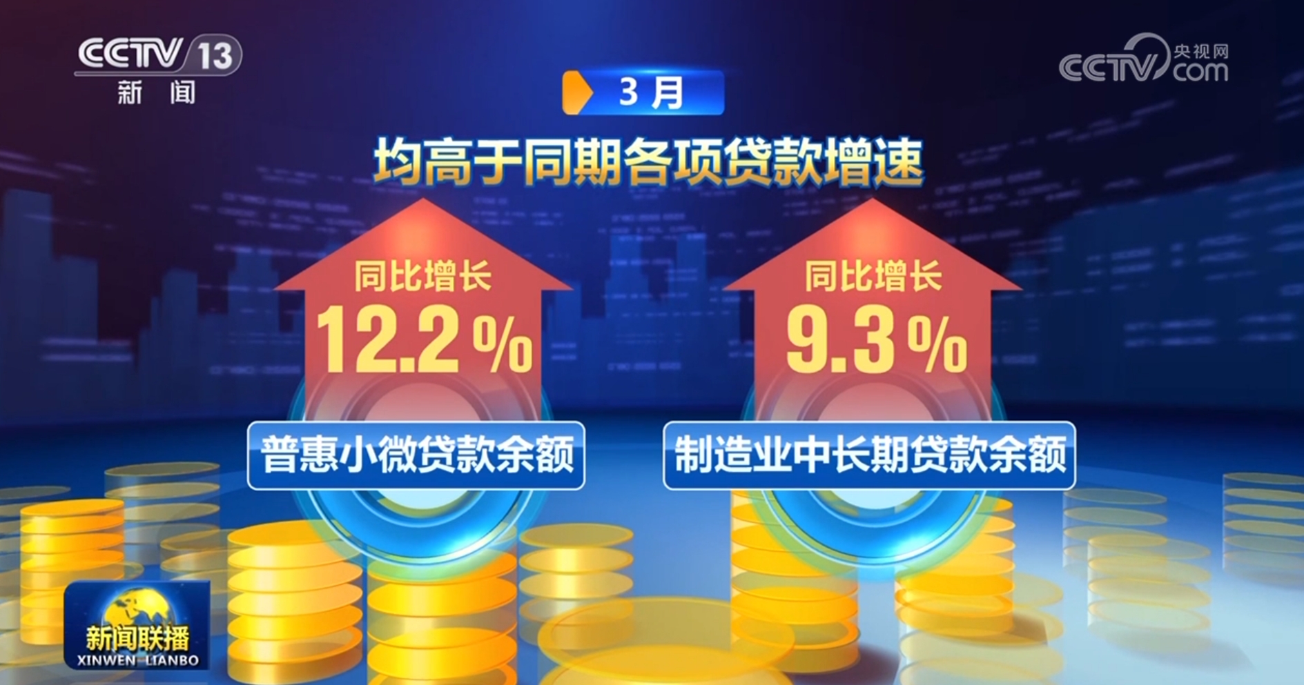 貸款同比多增,信貸結構也出現(xiàn)不少亮點。3月,普惠小微貸款余額、制造業(yè)中長期貸款余額分別同比增長12.2%、9.3%,均高于同期各項貸款增速。