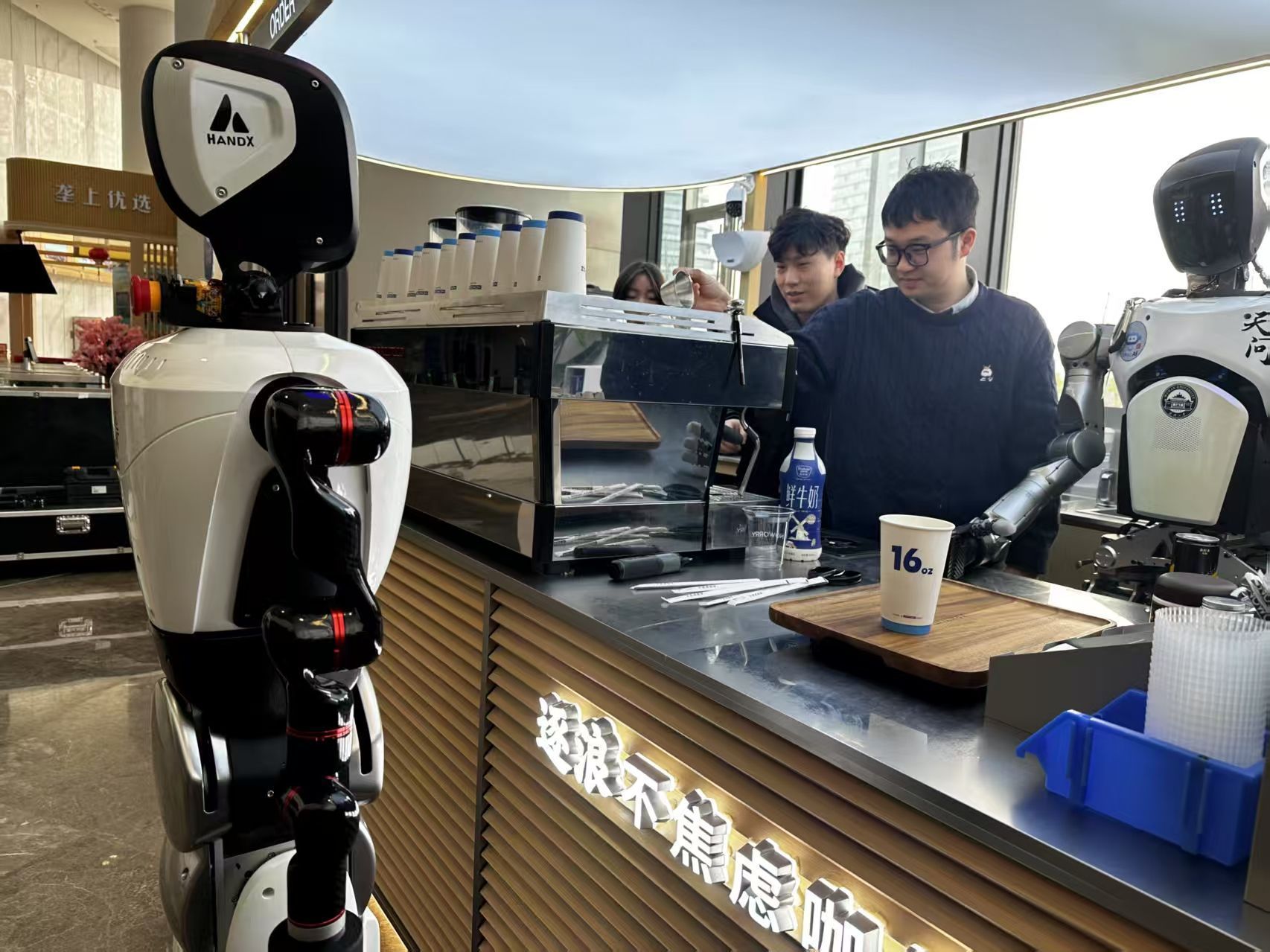 光谷街頭的咖啡店里,“天問”系著圍裙,熟練地為顧客送上咖啡;