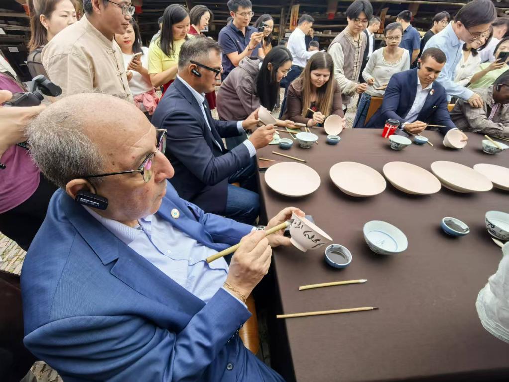 三面青山一面水,一城瓷器半城窯。在聞名遐邇的江西景德鎮(zhèn),使節(jié)們聆聽(tīng)千年瓷都故事,感受陶瓷文化承古啟新的時(shí)代魅力。