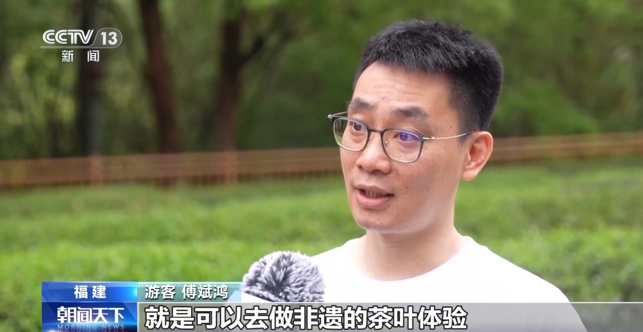 游客 傅斌鴻:武夷山的茶跟武夷山的旅游融合得特別棒,在這里有個(gè)很好的特色就是可以去做非遺的茶葉體驗(yàn)。