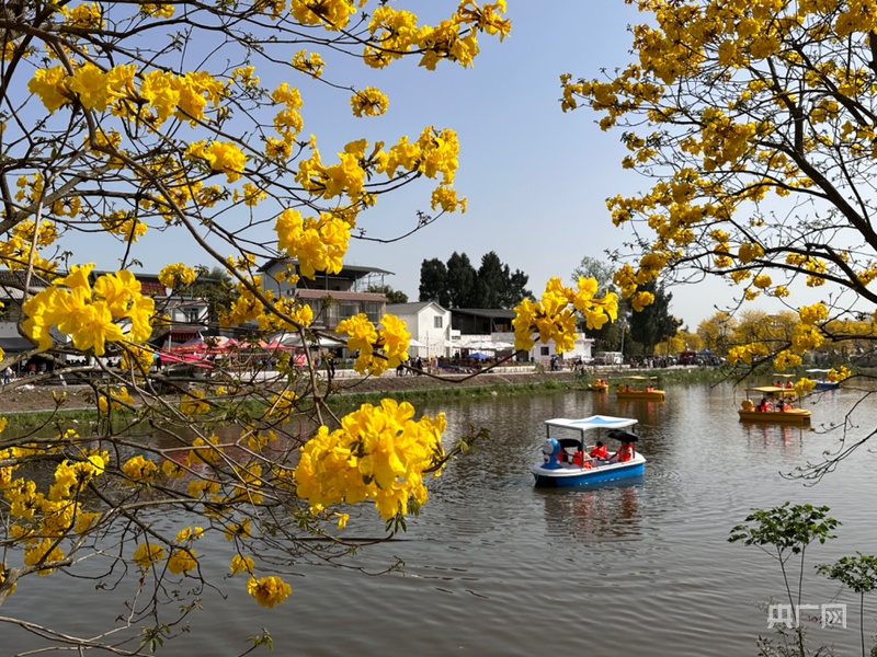 四月芳菲盛,踏青正當(dāng)時(shí)。近日,四川省簡(jiǎn)陽(yáng)市東麓花溪的千畝黃花風(fēng)鈴木迎來盛花期,金黃花海不僅吸引八方游客紛至沓來,更催生出多元消費(fèi)新場(chǎng)景,讓“鮮花經(jīng)濟(jì)”綻放出獨(dú)特魅力。