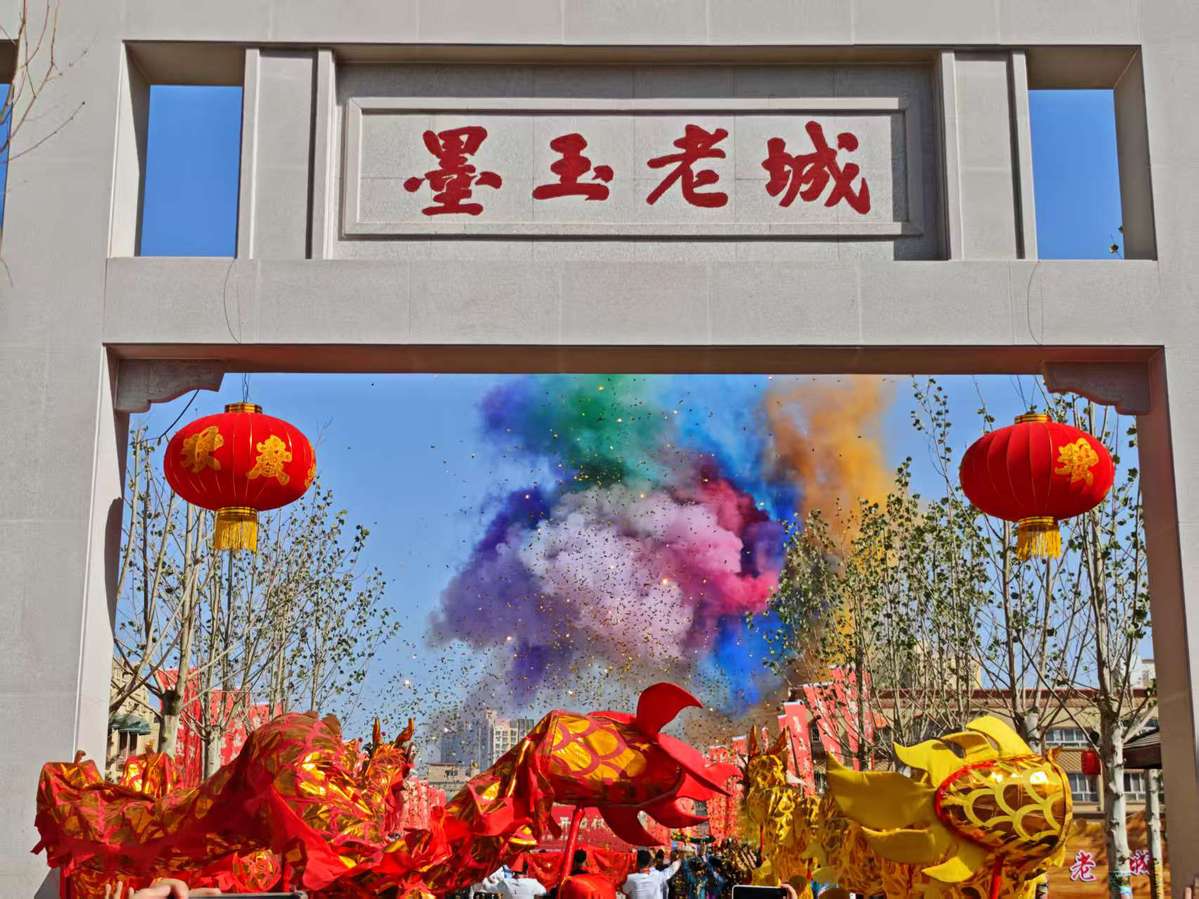 這是5月1日墨玉老城開城儀式上的舞龍表演。