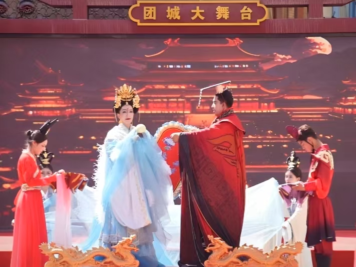5月1日上午,新疆和田地區(qū)和田團城、墨玉老城兩大景區(qū)同步舉行盛大的開城儀式。在和田團城,和田市文工團與新玉演藝集團聯(lián)袂演繹新編沉浸式舞劇《西巡傳說》。作為開城儀式的重頭戲,舞劇《西巡傳說》以《山海經(jīng)》、《穆天子傳》及《竹書紀(jì)年》等歷史文獻記載作為參考,再現(xiàn)周穆王西巡的繁華盛景。徜徉在特色的民居建筑間,游客可偶遇身著熒光色改良艾德萊斯綢服飾走秀的青年模特,觀看到各鄉(xiāng)鎮(zhèn)街道創(chuàng)排的音樂舞蹈表演。異彩紛呈的巡游活動讓烏魯木齊游客馬金玲稱贊:“這里讓人來了還想來!”