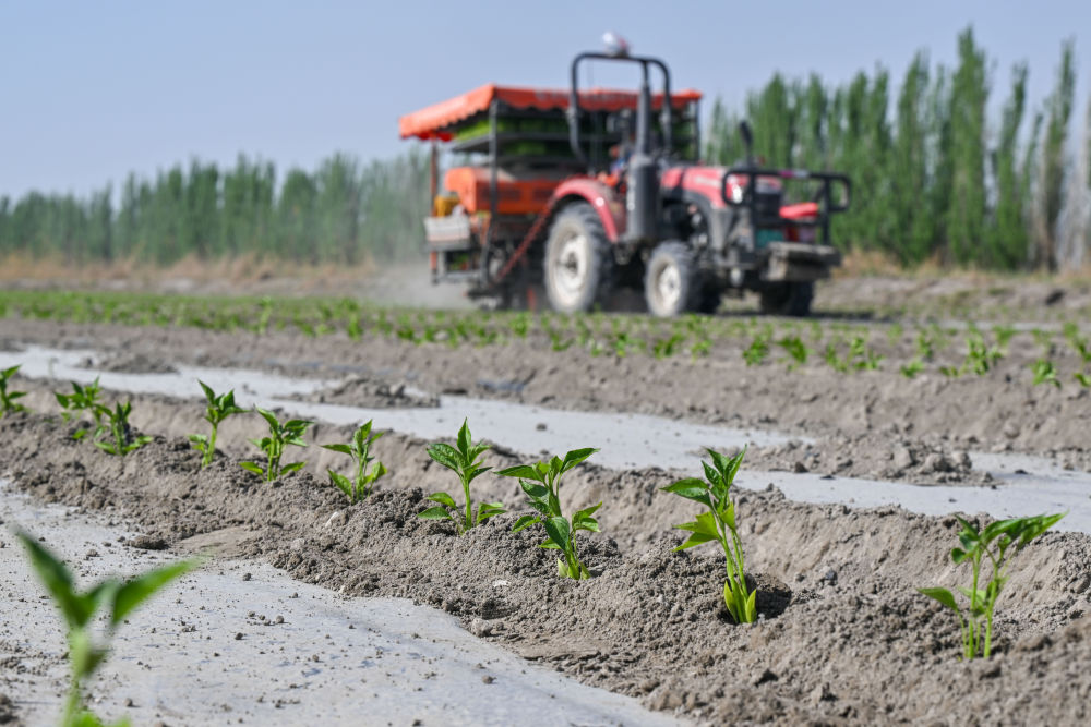 2024年,博湖縣工業(yè)辣椒種植面積達(dá)7.95萬(wàn)畝,年產(chǎn)干椒4萬(wàn)噸,縣域內(nèi)色素辣椒加工企業(yè)(合作社)達(dá)12家,辣椒種植戶相較上一年度每戶增收近3000元?!坝袊?guó)家農(nóng)機(jī)補(bǔ)貼政策的支持,農(nóng)戶購(gòu)買農(nóng)機(jī)的積極性大大提高,僅辣椒、番茄自動(dòng)移栽機(jī)保有量就有190多臺(tái)?!辈┖h農(nóng)業(yè)農(nóng)村局局長(zhǎng)羅克曼·如則說(shuō)。