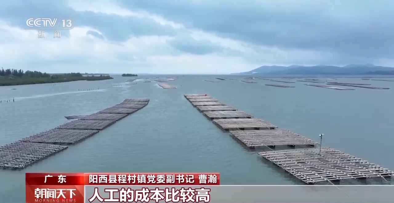 總臺(tái)央視記者 李嘯虎:在國(guó)家農(nóng)業(yè)產(chǎn)業(yè)強(qiáng)鎮(zhèn)廣東陽西程村鎮(zhèn),“五一”期間,這里的生蠔迎來大量上市。這片占地六萬多畝的生蠔養(yǎng)殖基地里,養(yǎng)殖戶正從水下收獲一排排成熟的生蠔,40多萬箱新捕撈的海鮮正從這里走上百姓的節(jié)日餐桌。
