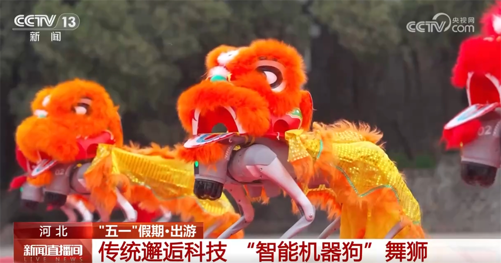 5月1日,在老龍頭景區(qū),醒獅技藝與智能機器狗的互動表演《智舞雄獅》吸引了大批游客駐足、參與,4臺搭載智能交互系統(tǒng)的機器獅與醒獅隊同臺獻藝,現場游人沉浸式體驗“長城+科技”的文旅新產品。