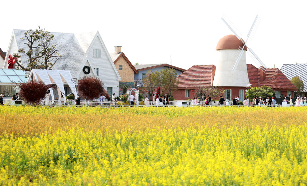 5月4日,游客在山東省臨沂市郯城縣醉東風鄉(xiāng)村藝棧游覽。