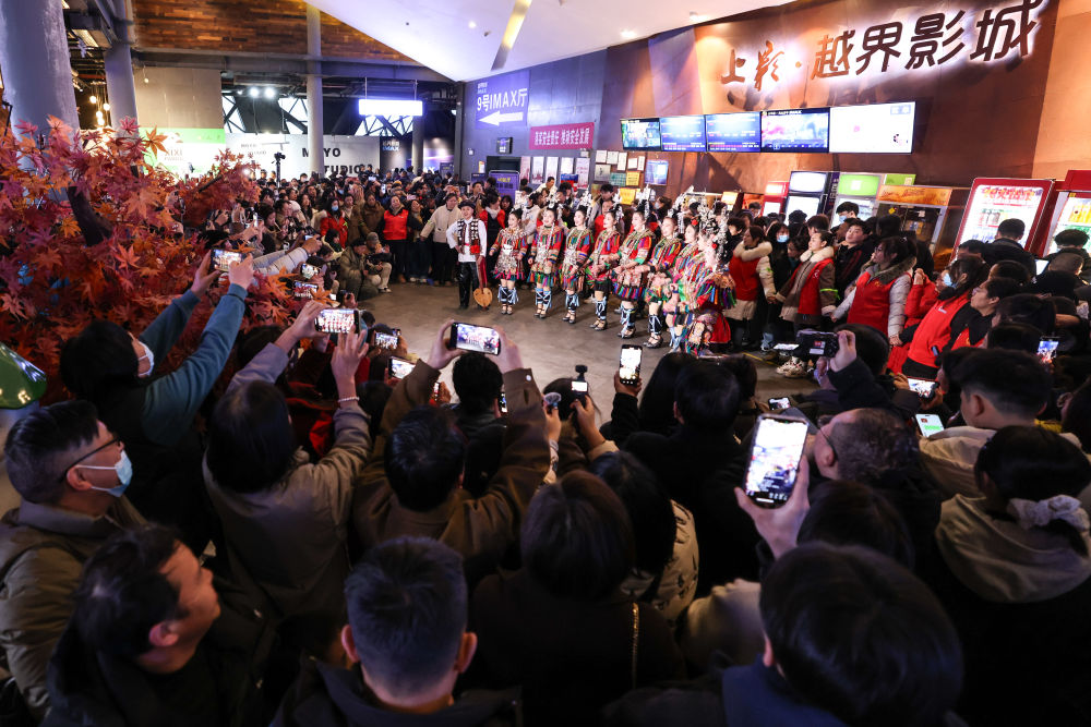 2月25日,觀(guān)眾在貴陽(yáng)越界影城觀(guān)看侗族大歌表演。新華社記者 歐東衢 攝
