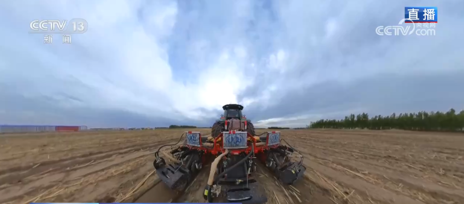在吉林省通榆縣興隆山鎮(zhèn)的一處玉米示范田,當(dāng)?shù)負(fù)屪デ绾锰鞖?,進(jìn)行最后100畝玉米的播種作業(yè)。現(xiàn)場(chǎng)幾臺(tái)條耕機(jī)馬力全開,穿梭在廣袤的田野間。緊隨條耕機(jī)之后的播種機(jī),依托搭載的北斗導(dǎo)航系統(tǒng)精準(zhǔn)定位播種。不到十分鐘,十畝玉米田便完成從耕作到播種的全流程作業(yè)。據(jù)合作社的負(fù)責(zé)人介紹,3000畝的玉米田大約2周左右就可以完成播種。