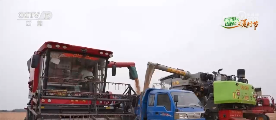 在河南南陽(yáng)鄧州構(gòu)林鎮(zhèn)這處麥田,金黃的麥浪層層鋪開,麥穗 在陽(yáng)光下熠熠生輝。4臺(tái)聯(lián)合收割機(jī)開足馬力穿梭在麥田間,伴隨著機(jī)器的轟鳴聲,成熟的小麥被快速收割、脫粒,金黃的麥粒從收割機(jī)的出糧口傾瀉而出,裝入一旁的運(yùn)輸車輛。