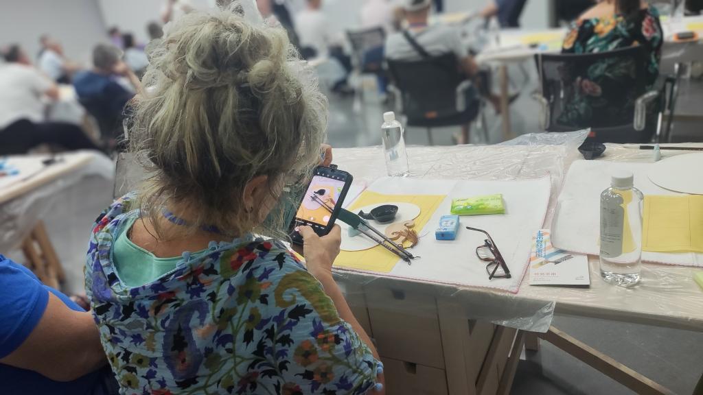 在上海市群眾藝術(shù)館,近60名波蘭團隊游客跟隨書法指導(dǎo)老師了解中國“文房四寶”的制作方法,學(xué)習(xí)用毛筆書寫漢字,還參觀了最新攝影展及非遺市集,了解上海各級文化館服務(wù)內(nèi)容、工作職責。