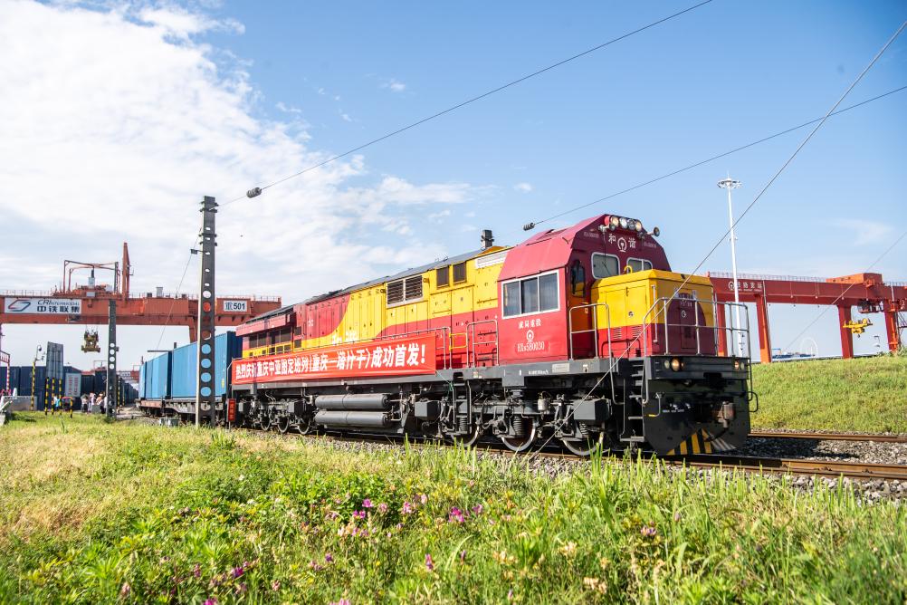 4月20日上午,一列滿(mǎn)載“重慶造”聚酯切片的中亞班列,從重慶團(tuán)結(jié)村中心站緩緩駛出,這是重慶首次開(kāi)行圖定中亞班列,此后將以每月2列的固定頻次實(shí)現(xiàn)常態(tài)化開(kāi)行。新華社記者 唐奕 攝