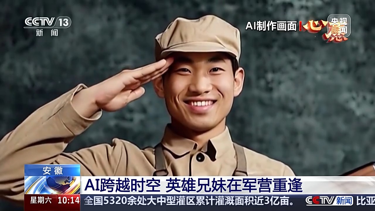 相見,是間隔在生死之間的人們最難以實(shí)現(xiàn)的夙愿??偱_(tái)記者送給了李家英老人一份特殊的禮物,借助總臺(tái)的AI技術(shù),讓同是軍人的兄妹倆在軍營(yíng)實(shí)現(xiàn)了跨越時(shí)空的團(tuán)聚。