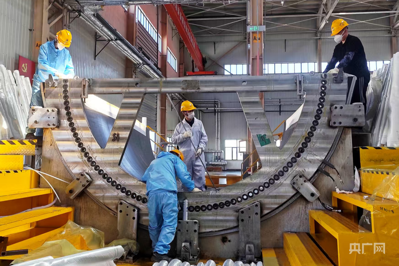 不遠(yuǎn)處的中水四局(塔城)能源裝備有限公司,正開足馬力生產(chǎn)6米直徑的分片式塔筒?!懊慷嗡埠附诱`差必須控制在毫米級?!笨偣こ處熗粑迨慕榻B,企業(yè)年產(chǎn)400套塔筒的生產(chǎn)線已滿負(fù)荷運轉(zhuǎn),去年9月到今年四月有24套出口哈薩克斯坦,今年已承接100多套訂單。