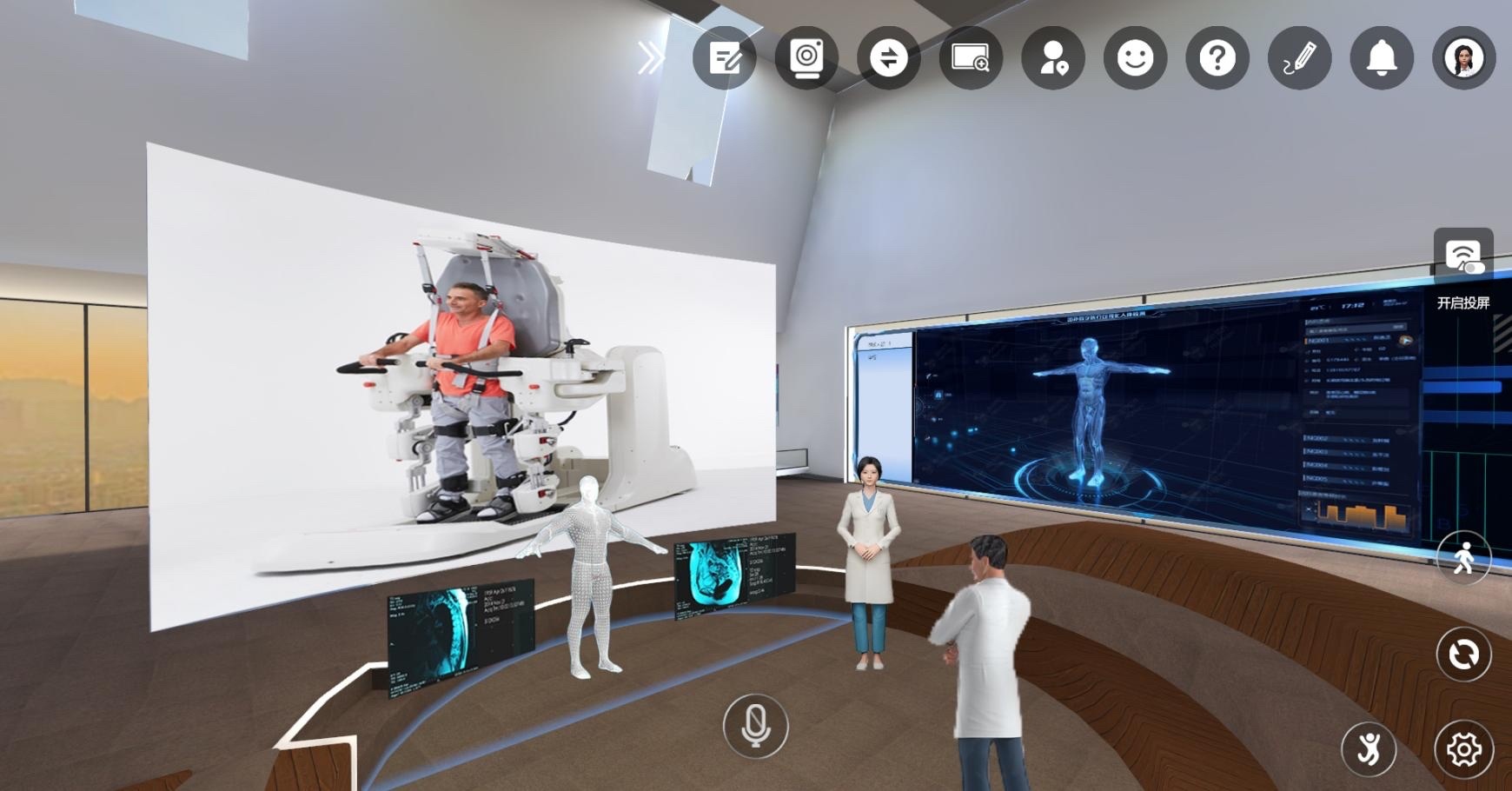 “就像推開一扇通往平行世界的門,這種‘在場(chǎng)感’是傳統(tǒng)遠(yuǎn)程協(xié)作難以企及的?!本S賽客首席運(yùn)營官徐晨翔邊演示邊解釋道。他調(diào)出了VS·work中的“智聯(lián)康復(fù)元診療平臺(tái)”——這是維賽客在醫(yī)療元宇宙領(lǐng)域的創(chuàng)新應(yīng)用,集成了病情診療、康復(fù)訓(xùn)練、社交培訓(xùn)等功能。在虛擬界面中,醫(yī)生可以通過高精度空間定位系統(tǒng)“走進(jìn)”患者的虛擬診療室,患者則通過可穿戴設(shè)備完成肌力評(píng)估、平衡訓(xùn)練等動(dòng)作,數(shù)據(jù)實(shí)時(shí)反饋至醫(yī)生終端,為偏遠(yuǎn)地區(qū)的患者提供了更加便捷、高效的診療服務(wù)。