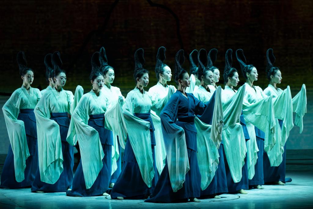 演員在舞蹈詩劇《只此青綠》中表演。新華社記者 張金加 攝