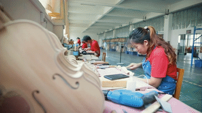 2015年以來,確山縣“筑巢引鳳”,發(fā)展制琴產(chǎn)業(yè)。王金堂等60余名制琴師陸續(xù)返鄉(xiāng)創(chuàng)業(yè)。如今,全縣共有提琴生產(chǎn)企業(yè)144家,形成從木材處理、配件雕刻到油漆噴涂的完整產(chǎn)業(yè)鏈,年產(chǎn)值突破6億元,出口創(chuàng)匯超千萬美元,帶動(dòng)了2600余人在家門口就業(yè)。