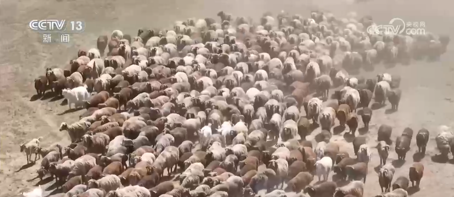 在新疆阿勒泰福海縣的沙爾布拉克草原,當?shù)啬撩翊┲恋奶厣?,帶著家當,趕著牛羊,正在進行轉場。今年有45萬頭的牛羊經(jīng)過沙爾布拉克草原千年牧道,轉場到水草豐美的夏牧場。