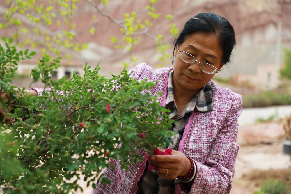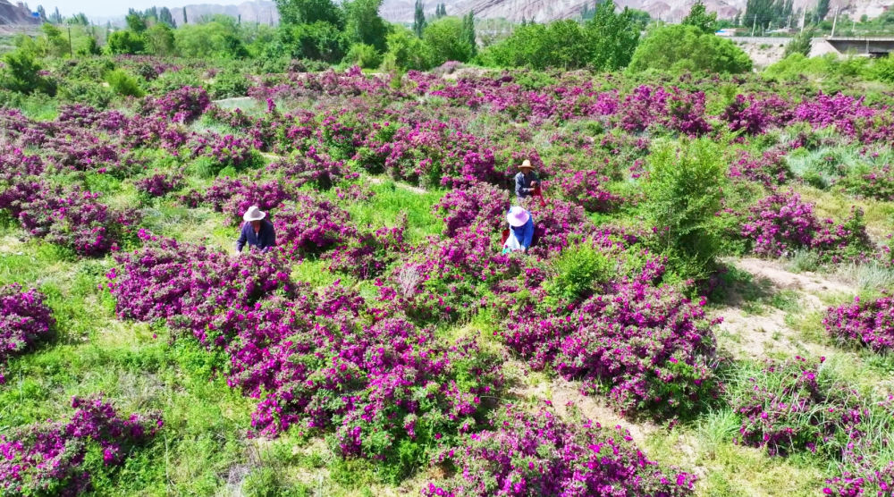 當地人正在采摘苦水玫瑰。新華社發(fā)(童張偉攝)