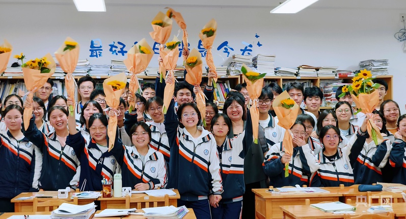 課堂上,除了有來自老師和同學(xué)們的祝福,還有一份特別的禮物。在前一天,學(xué)弟學(xué)妹們親手摘下了校園里種植的向日葵,送給即將畢業(yè)的學(xué)長學(xué)姐,祝愿他們“向陽而生”,未來一路生花。