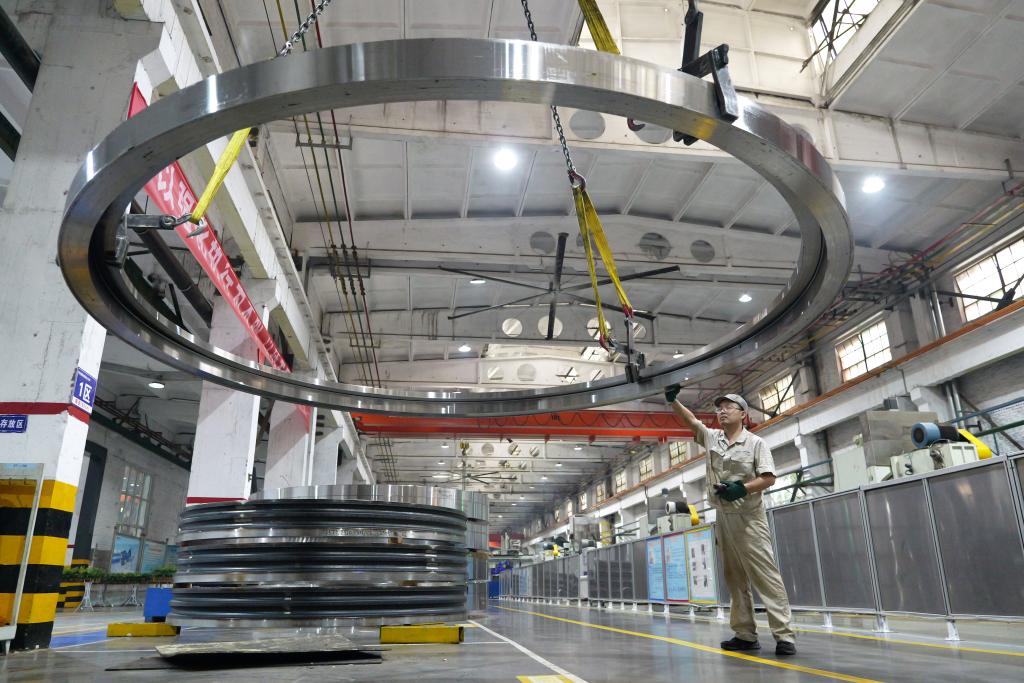 5月22日,工人在洛軸集團風電三車間生產線上作業(yè)。新華社記者 李嘉南 攝