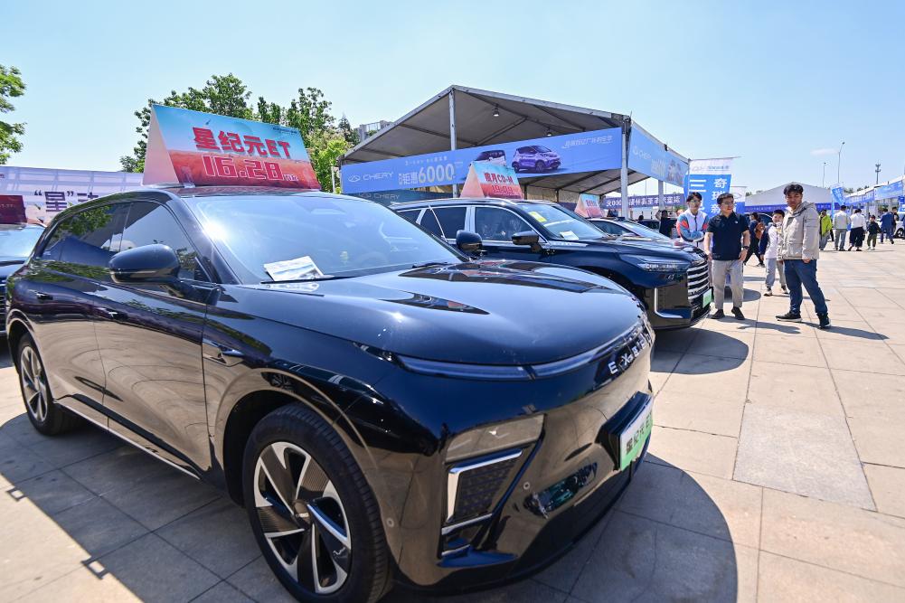 5月3日,消費者在山東省青州市舉辦的汽車·房產家居文化節(jié)上參觀選購展出的汽車。新華社發(fā)(王繼林攝)
