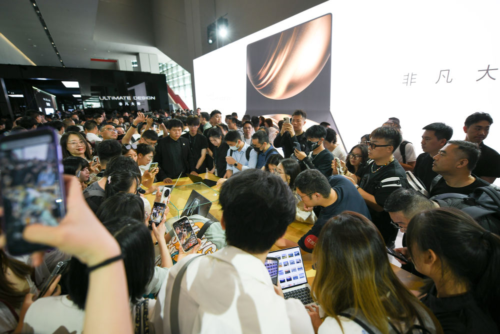 5月19日,消費者在發(fā)布會后體驗鴻蒙電腦。5月19日,華為在成都正式發(fā)布兩款鴻蒙電腦,這是鴻蒙操作系統(tǒng)首次在電腦端正式發(fā)布,在電腦操作系統(tǒng)領域邁出新步伐。新華社記者 胥冰潔 攝