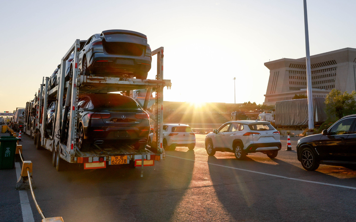 這是2025年5月27日在新疆霍爾果斯公路口岸拍攝的等待驗(yàn)放的車輛。(圖片來(lái)源:新華社)